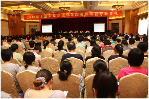 2011年7月10日上海未来路进修学院举行暑期课程开学典礼,教育部中国教师发展基金会秘书长杨春茂司长、国家督学、教育部教育督导办常务副主任林仕梁司长、教育部基础教育课程、教材发展中心曹志祥副主任、教育部国家教师科研基金管理办公室佟学主任出席了会议。
